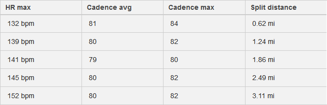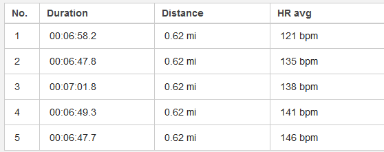 My average pace per mile definitely needs work. This is a flat course with very few turns. My pace should not waver by almost 30 seconds per mile. Having that data definitely gives me something to think about.